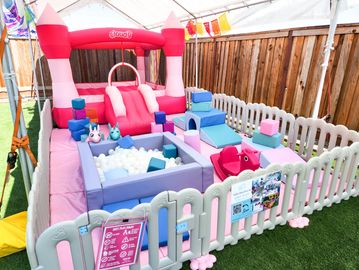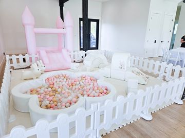 If there is a chance of rain please have a back up space available indoors ,soft play can not get wet.